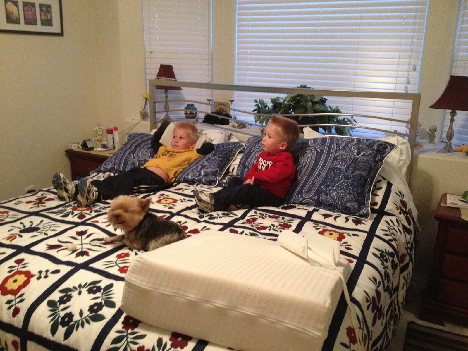They also love grandma's because they can go hang out on her bed and watch cartoons...or channel six-six as Braxton will tell you!